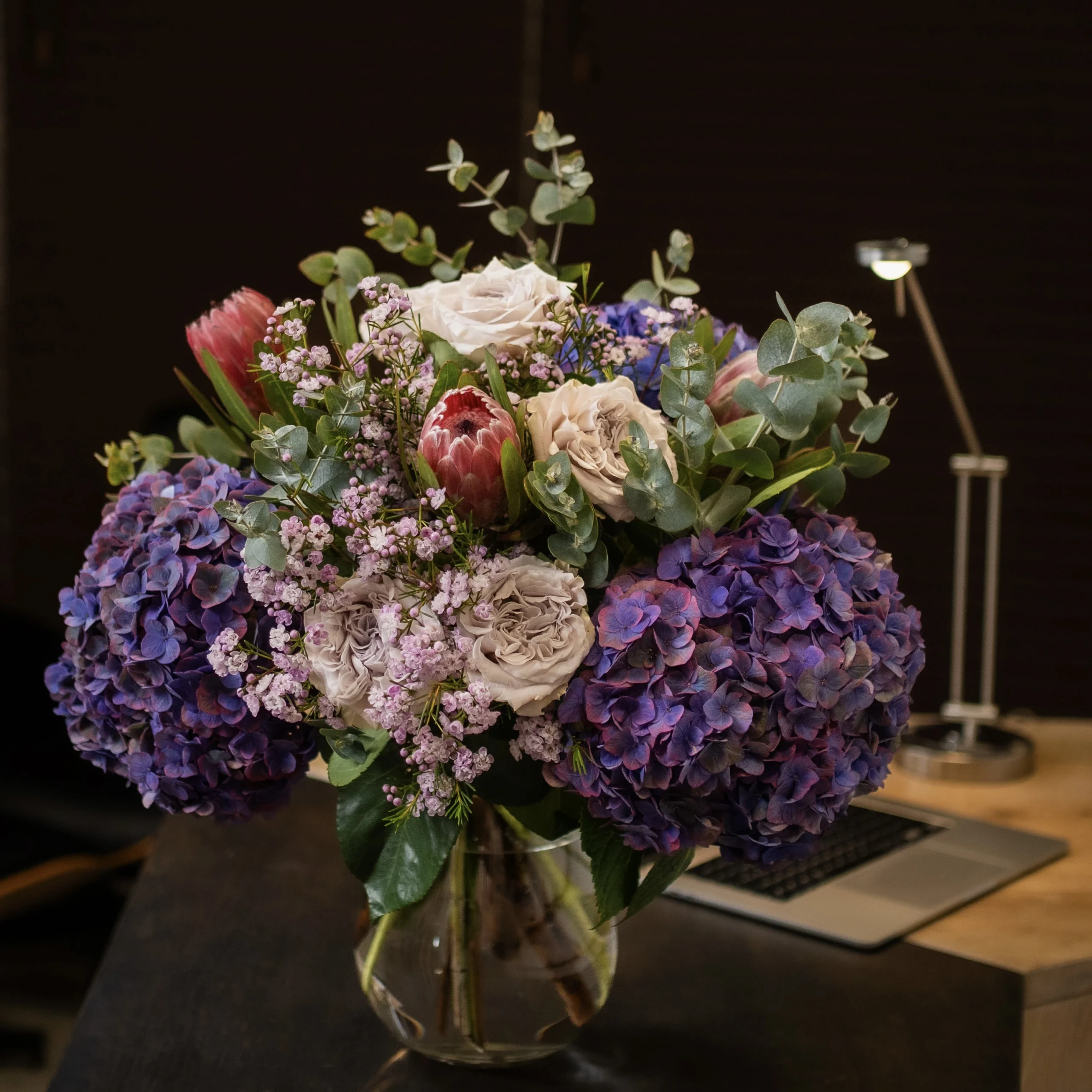 Autorski bukiet zawiera kwiaty o bardzo różnych łodygach – cienkich i delikatnych oraz grubszych i sztywnych. Zbyt mały lub wąski wazon powoduje ściskanie łodyg, ogranicza dopływ wody i najszybciej osłabia najbardziej wrażliwe gatunki.